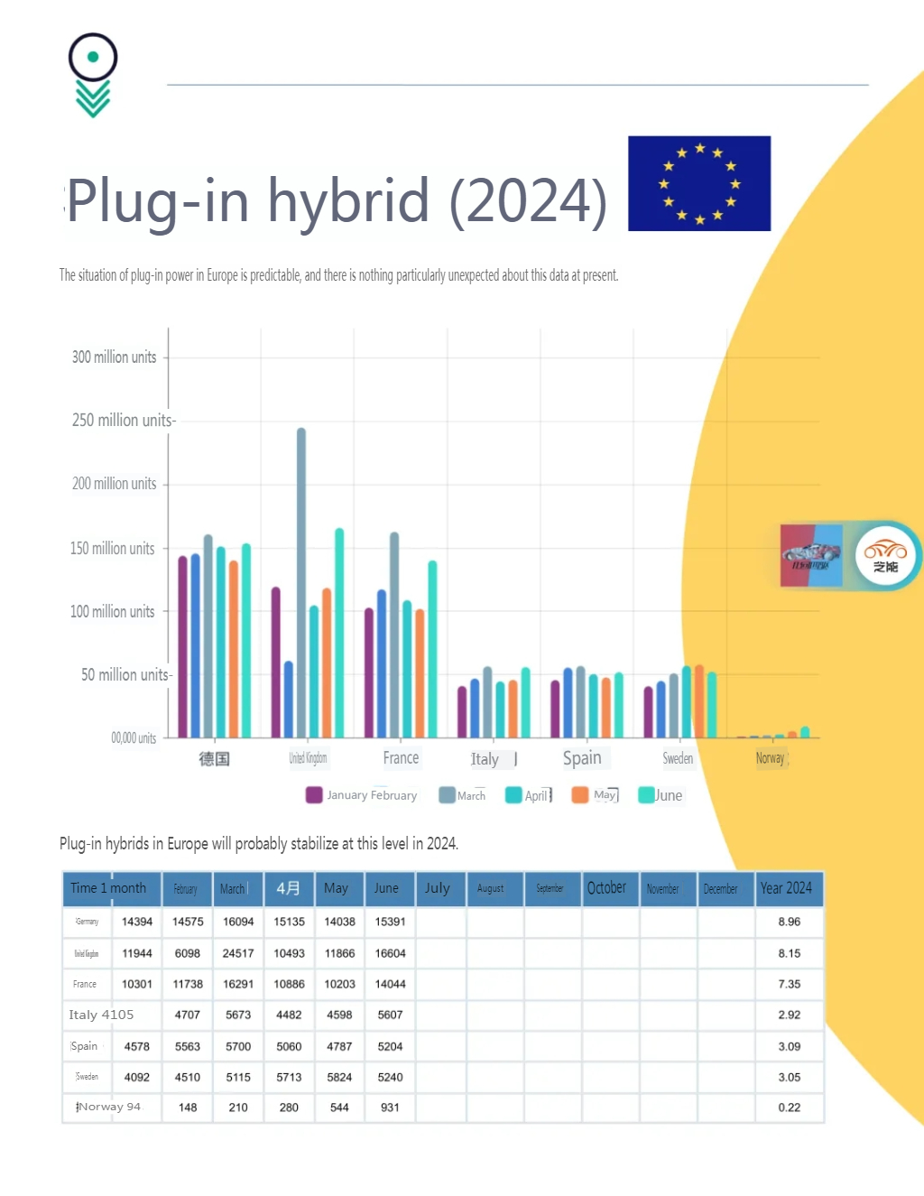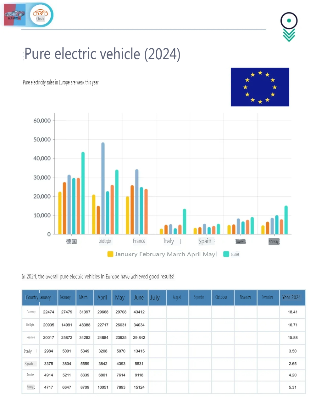 Overall, the growth rate of both pure electric vehicles and plug-in hybrid vehicles in the European market is relatively slow in 2024.