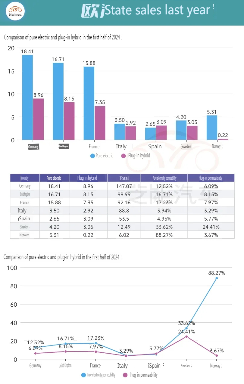 set new highs for 2024, while pure electric sales in other countries are relatively balanced.