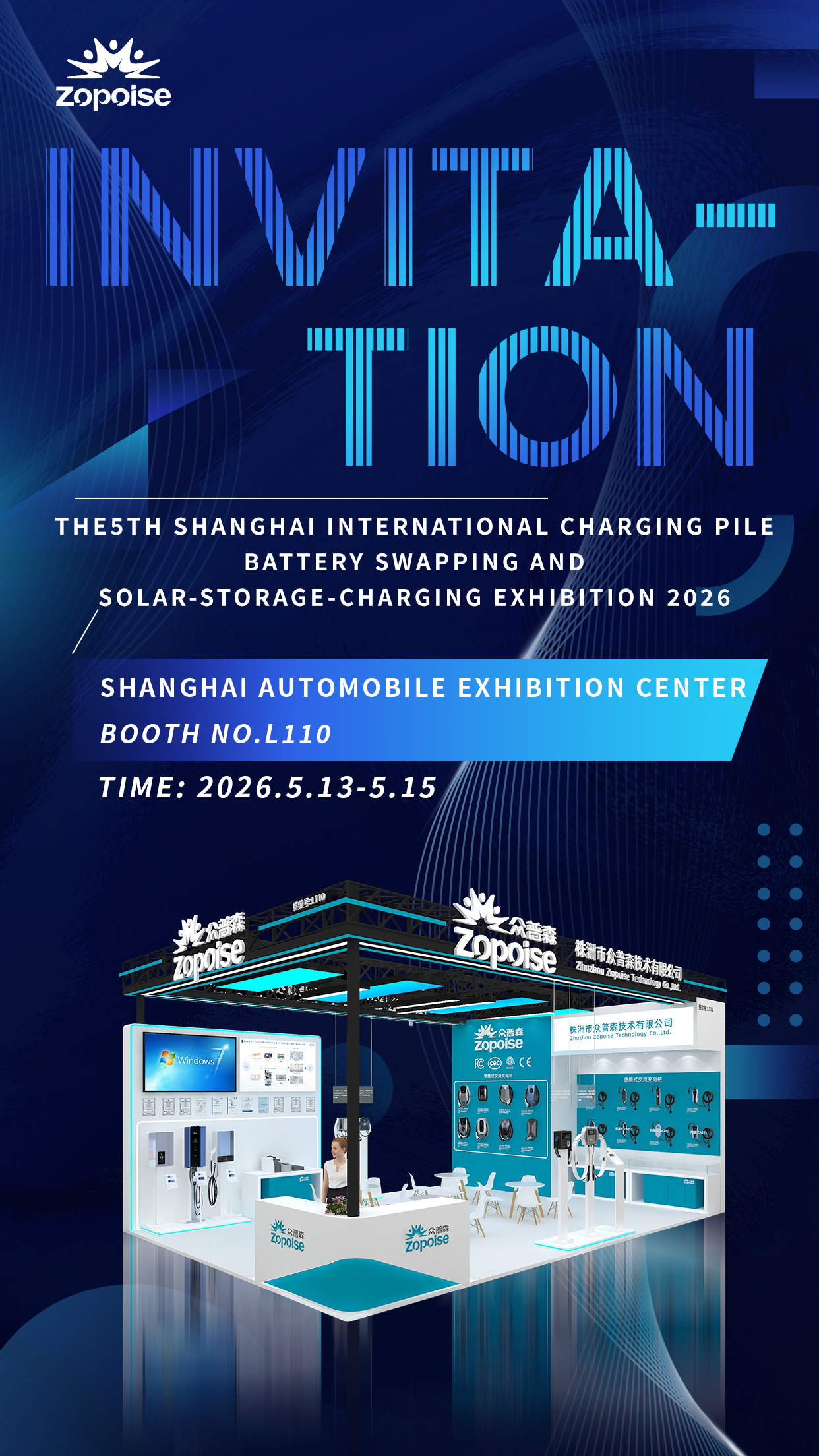 From May 13th to 15th, at Booth L110 of Shanghai Automobile Exhibition Center, Zhuzhou Zopoise Technology Co., Ltd. will make a stunning debut with portable chargers for new-energy vehicles, AC charging piles, DC charging piles, and full-scenario intelligent charging solutions. We will explore new opportunities for the development of smart energy with industry colleagues and jointly draw a new blueprint for the future of green travel!